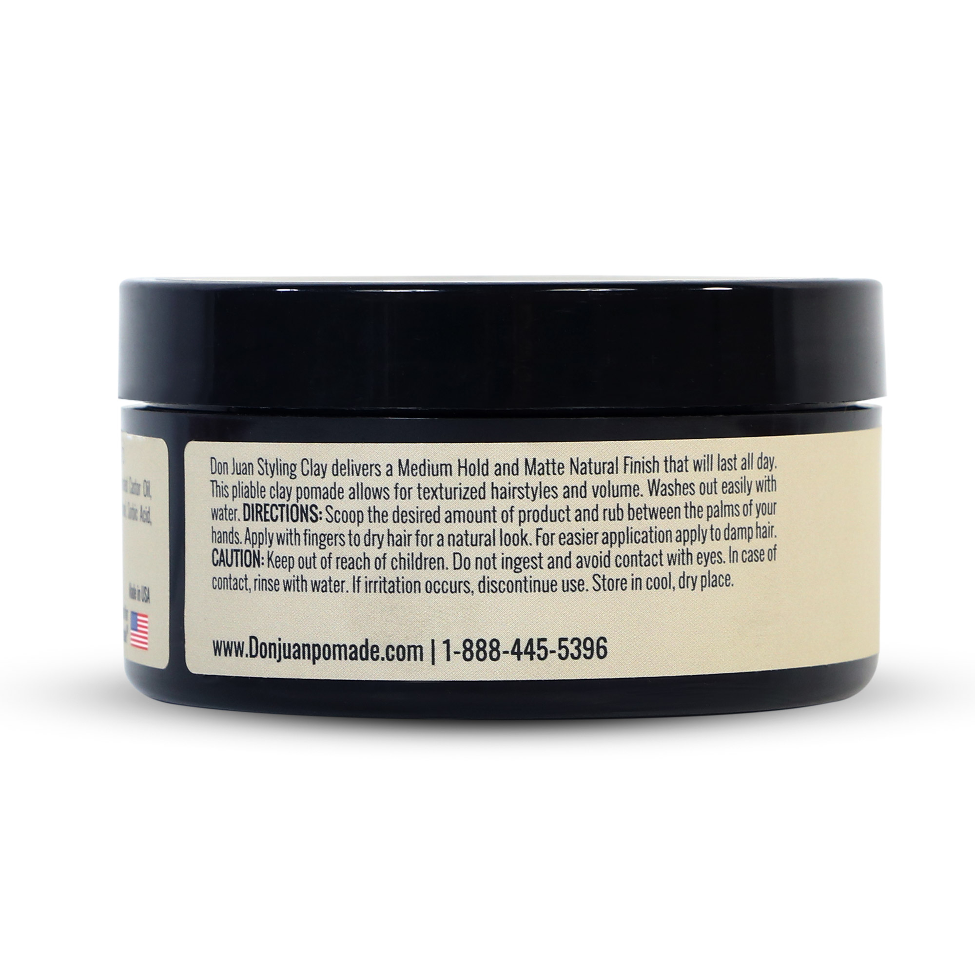 La arcilla para peinar artesanal de Don Juan ofrece un acabado mediano y un acabado mate natural que durará todo el día. Esta pomada de arcilla flexible permite peinados y volumen texturizados. Se lava fácilmente con agua.